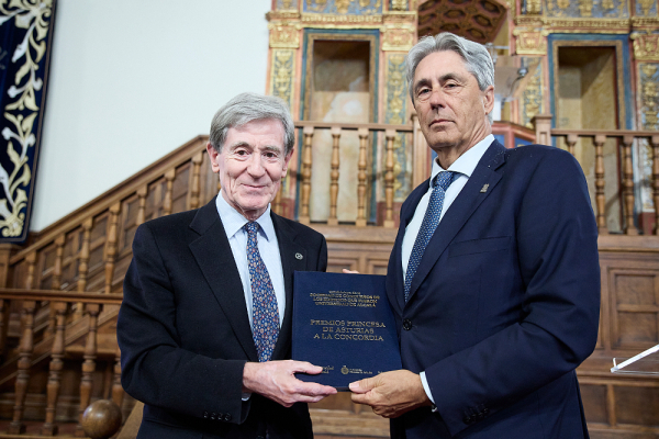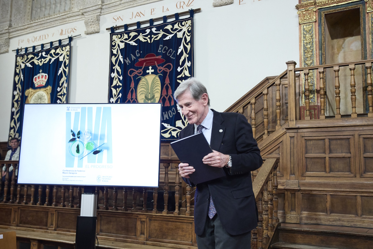 La entrega tuvo lugar durante la conferencia 'Lecciones del pasado para inventar el futuro', ofrecida por Federico Mayor Zaragoza, uno de los actos organizados en el contexto de la conmemoración del 25 aniversario de la declaración de la Universidad como Patrimonio Mundial.