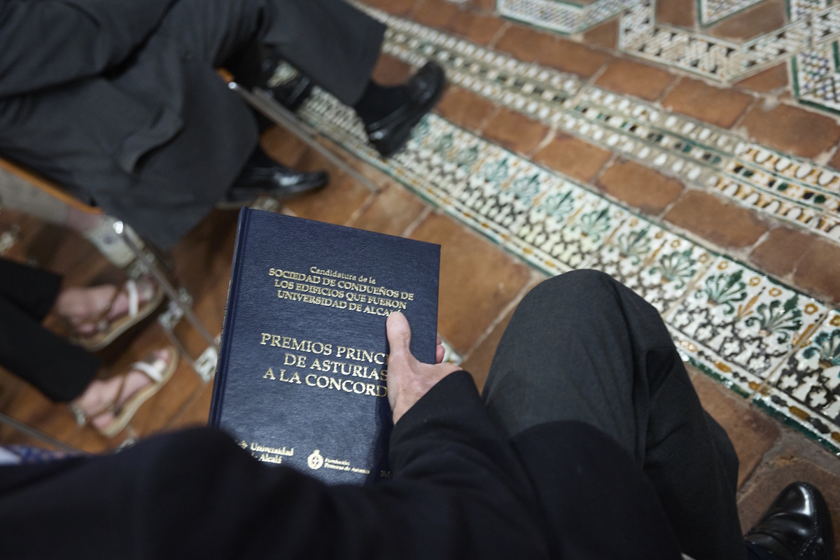 La Universidad de Alcalá entrega a la Sociedad de Condueños el texto con su candidatura a los Premios Princesa de Asturias (abril 2023)