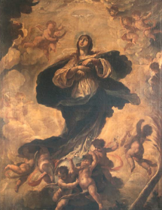 CRISTO CRUCIFICADO Y LA VIRGEN IMPONIENDO LA CASULLA A SAN ILDEFONSO