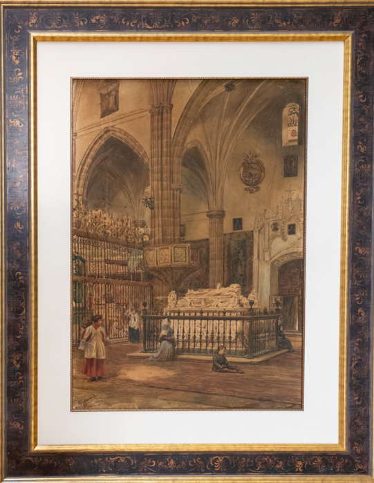 Es muy interesante este dibujo firmado por M. Castaño fechado en 1882 en Alcalá de Henares, al mostrarnos como era este templo antes del incendio de 1936. Aparece el túmulo de Cisneros con la reja que lo rodeaba, así como el antiguo coro, el púlpito y los tapices.
