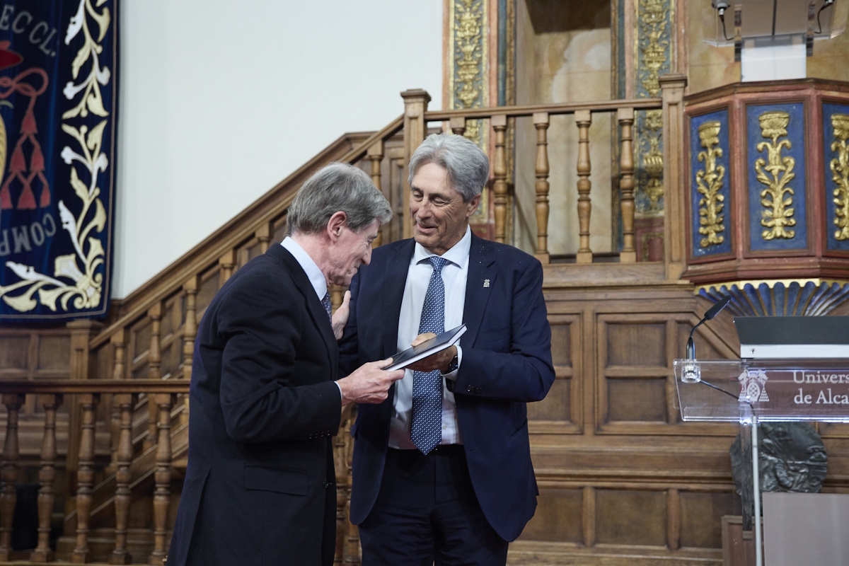 La entrega tuvo lugar durante la conferencia 'Lecciones del pasado para inventar el futuro', ofrecida por Federico Mayor Zaragoza, uno de los actos organizados en el contexto de la conmemoración del 25 aniversario de la declaración de la Universidad como Patrimonio Mundial.
